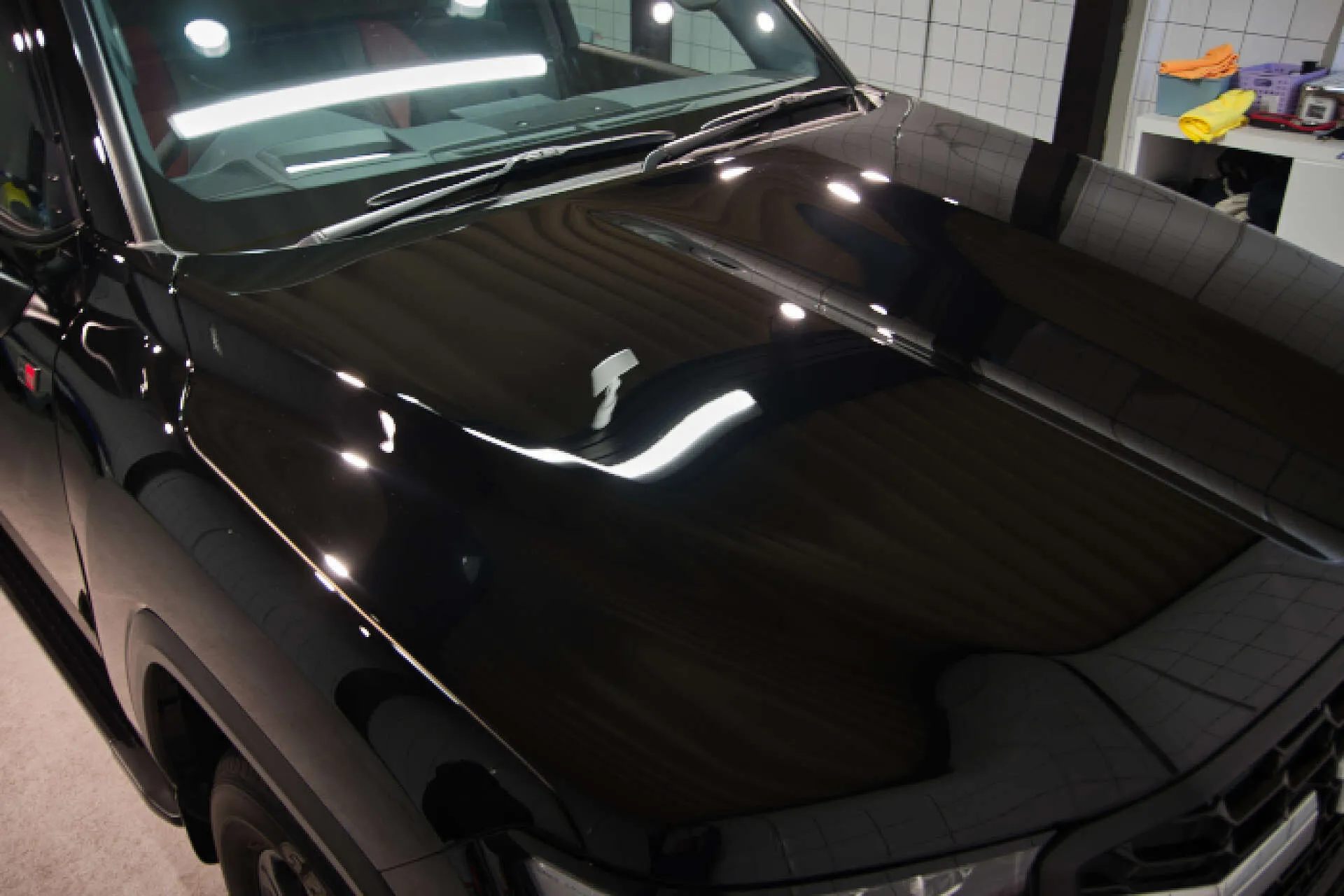 ガラスコーティング剤の施工においては一般的なカラーの場合は1層のみですが、ソリッド塗装のは場合はガラス被膜を2層としています。