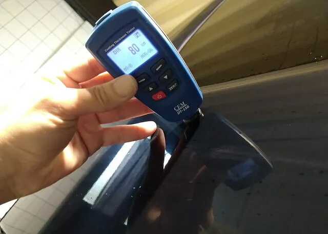 研磨工程では磨いたことにより発生する傷もさけられないほどの、デリケートな塗装ですので、傷を除去しつつも塗装の膜厚を極端に減らさないようにすることも重要。