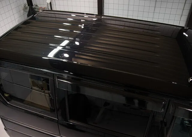 ガラス被膜の上には硬化型ガラスコーティングとマッチングされたトップコートを施工することで防汚性を高めています。